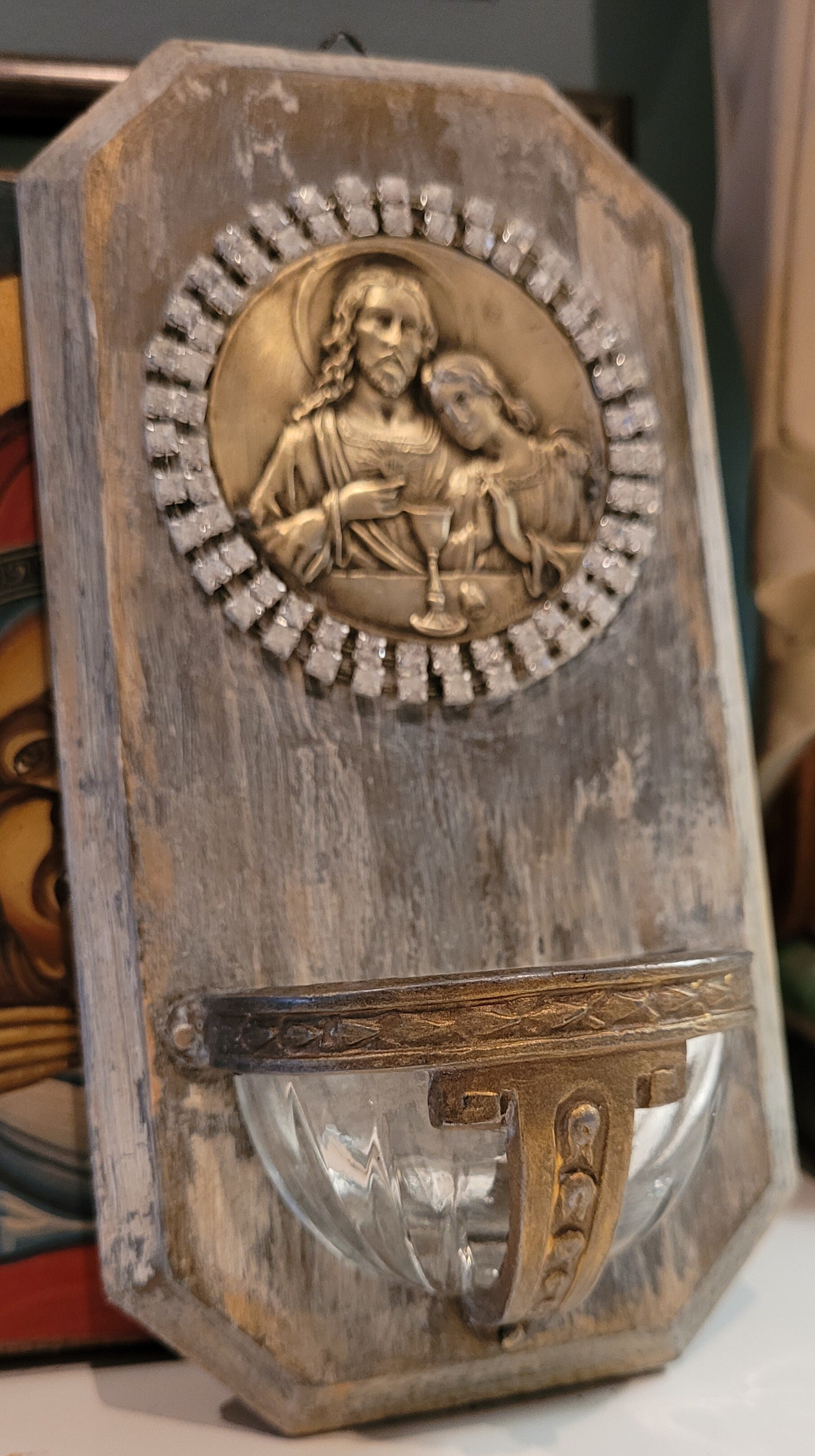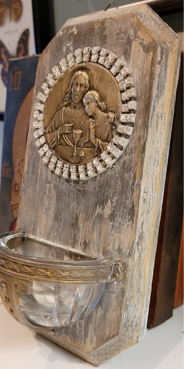 Antique bénitier Jésus Christ mural