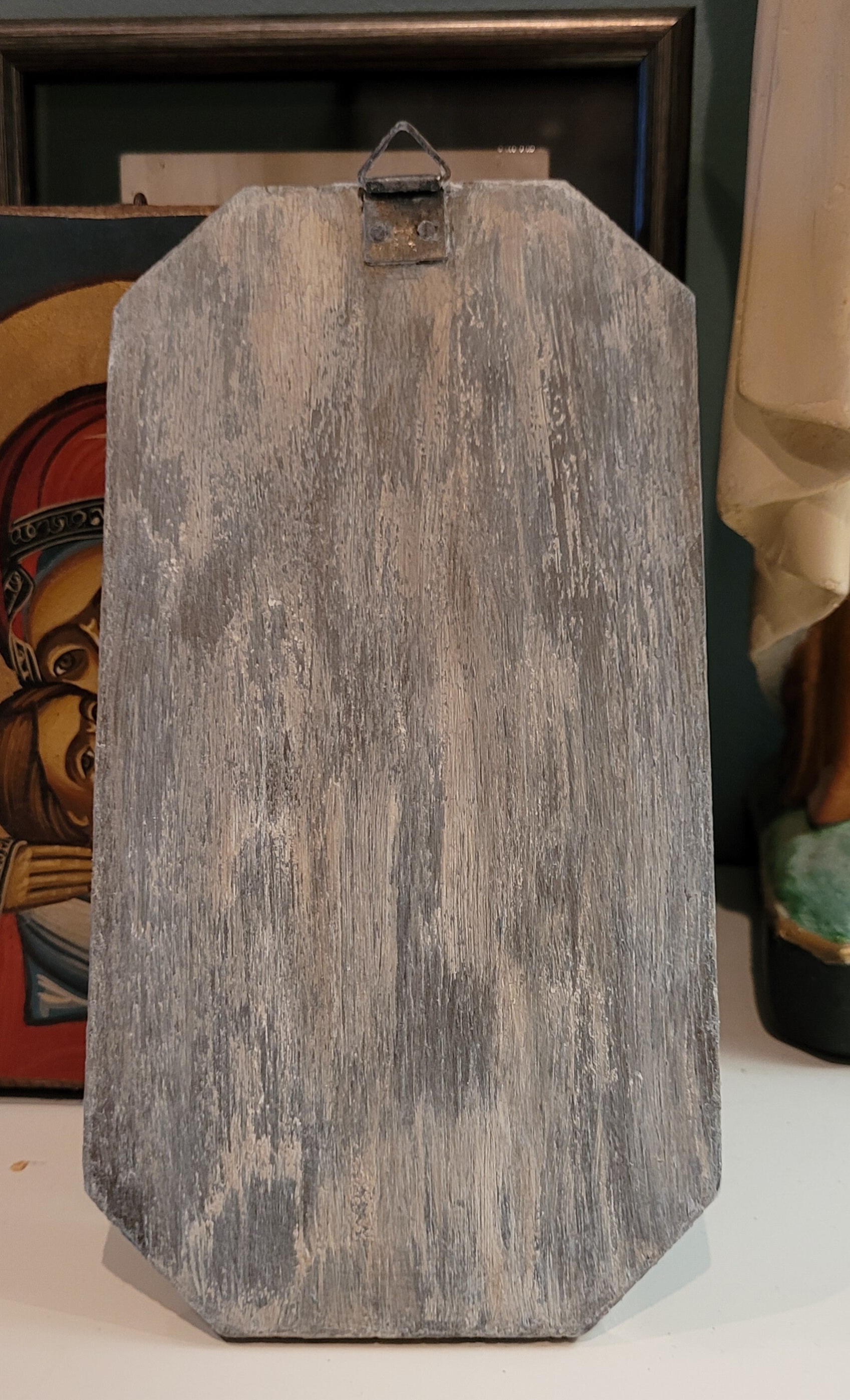 Crochet au dos pour l'accrocher au mur.